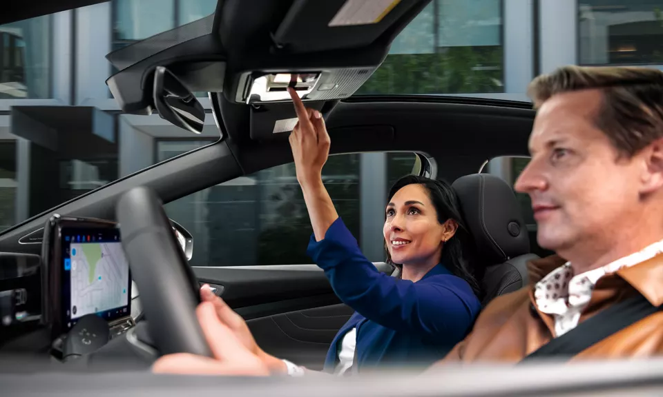 The infotainment display is located in the middle of the dash panel, angled slightly towards the driver. On 62 kwh-battery models, it is a 12-inch Discover Pro Max touch system, while 82 kWh-battery models receive an enhanced 12.9-inch screen. This screen can be configured to driver preference, and manages the standard navigation system, all telematics, entertainment, driver-assistance systems and vehicle settings. Menus can be moved using gesture control, simply swiping one’s hand in front of the screen. Sliders for volume and temperature adjustment are located on the inclined surface below the display. For models with the 12.9-inch system, the sliders are backlit, and the climate control interface and infotainment menu have been revised for more intuitive operation.