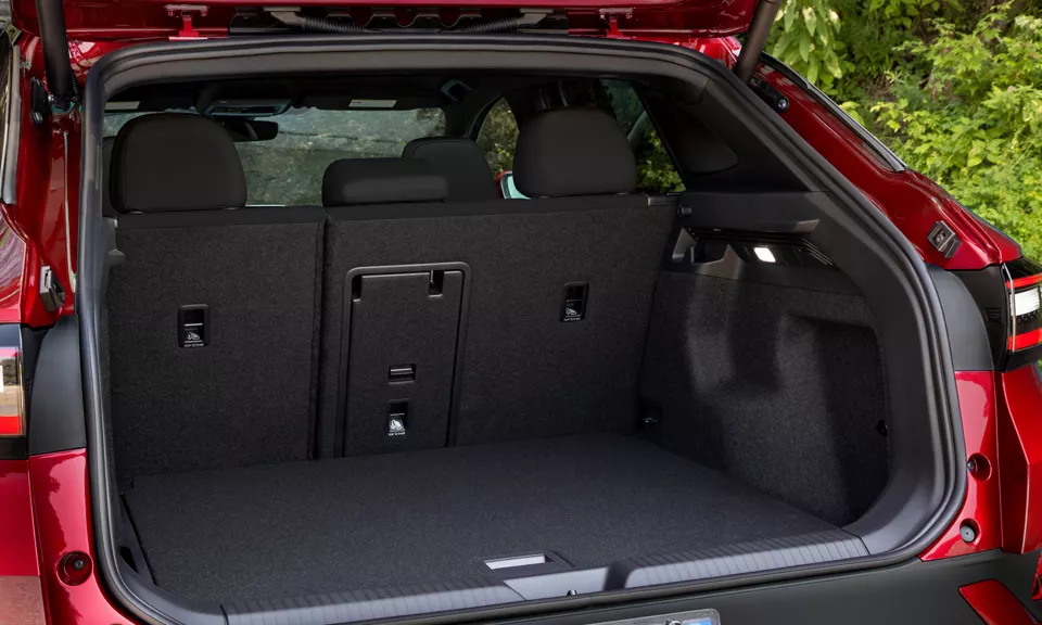 All trims but ID.4 Standard receive a unique adjustable trunk floor that allows for a flat load floor with rear-seats down, but which can be repositioned a few inches down to allow for larger items. S models and up add a ski pass-through, and a power tailgate with Easy Open & Close, which opens and closes the tailgate with a simple foot movement when the key is on the operator, to allow easy access when hands are full. A switch in the cockpit allows the driver to open and close the tailgate from inside the vehicle.
